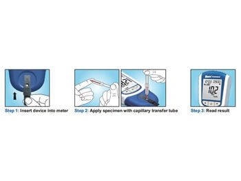 Tiekiama su 2 kontroliniais reagentais, 4 baterijomis, dėklu ir vadovu