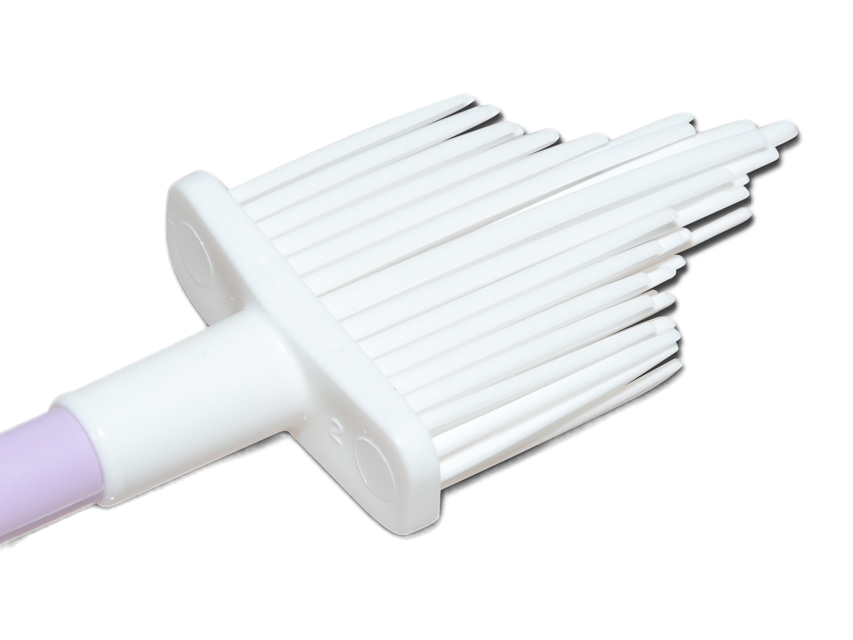 • Naudojant „Wallach” šepetėlį, tereikia paprasto sukamojo judesio, kad būtų paimtas visas endocervikalinių ir ektocervikalinių ląstelių mėginys, įskaitant transformacijos sritį.