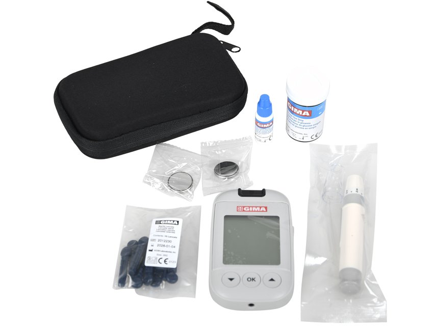 Pilnas rinkinys: 10 juostelių, kontrolinis tirpalas, 10 sterilių lancetų, lancetų įtaisas, permatomas dangtelis (testavimui ant dilbio ar delno), dėklas, naudotojo vadovas.