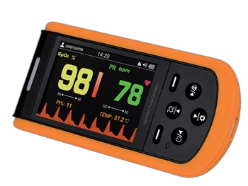 – Didelis 3,5 colio automatiškai besisukantis TFT ekranas, kuriame rodomi SpO2, PI, pletizmograma, PR ir temperatūra