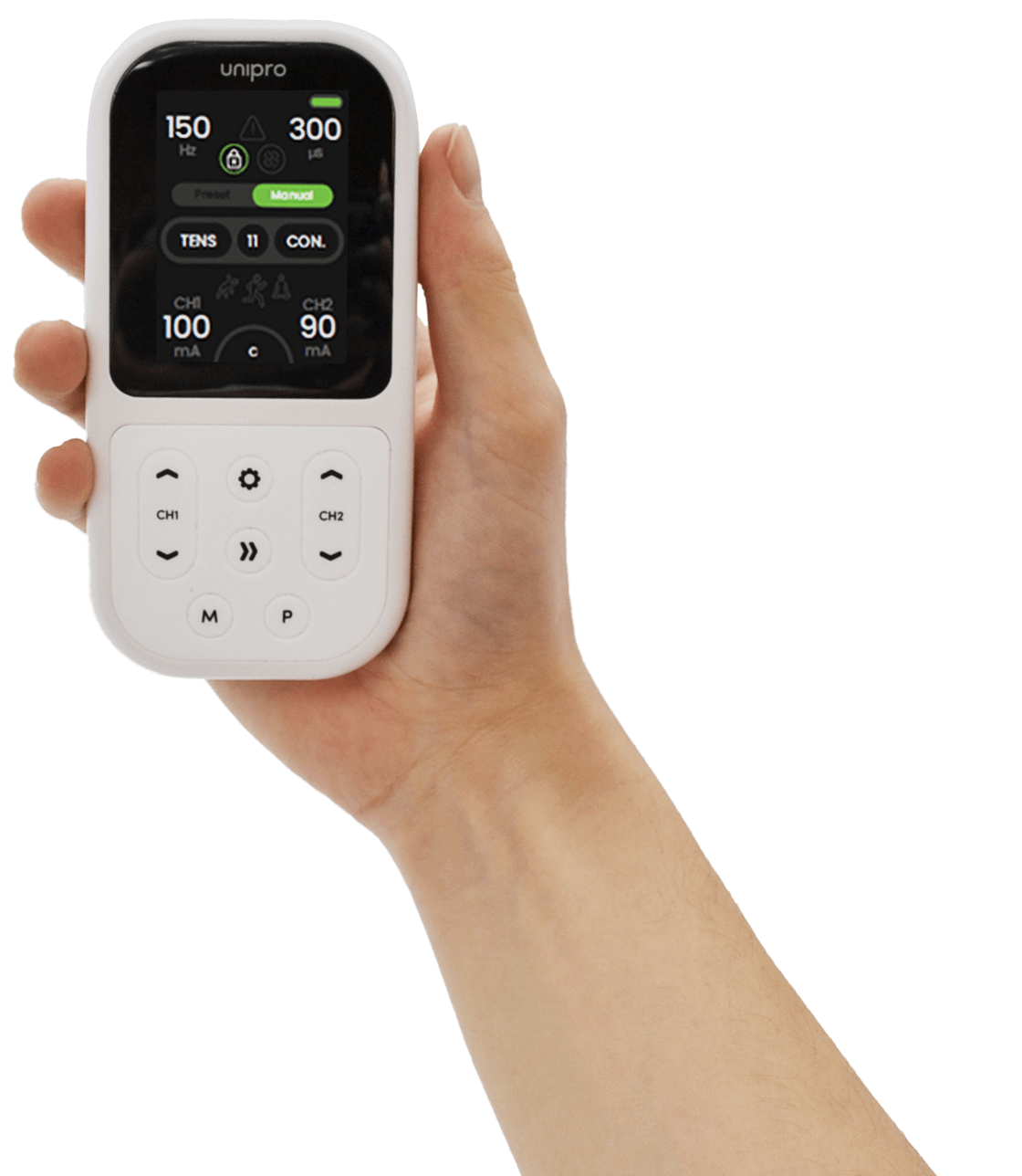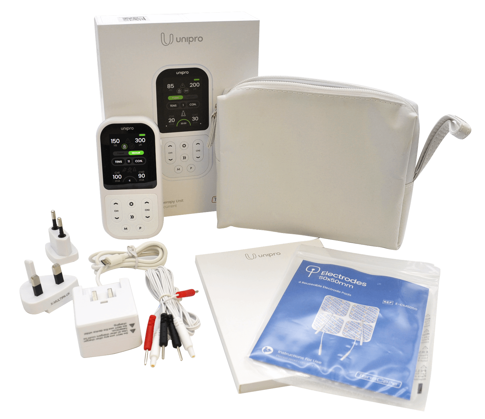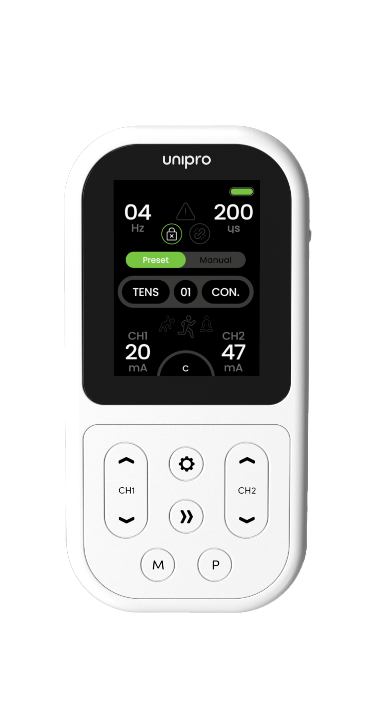 TENS (transkutaninė elektrinė nervų stimuliacija) garsėja savo gebėjimu malšinti simptominį skausmą. Nesvarbu, ar kenčiate nuo lėtinio skausmo, pooperacinio diskomforto, ar sąnarių skausmo, „Unipro” 12 TENS programų taiko skausmo vartų ir endorfinų išsiskyrimo mechanizmus, kad veiksmingai sumažintų jūsų diskomfortą. Be to, mikrosroviųjų srovių terapija padeda gyti žaizdoms ir dar labiau palengvina skausmą.